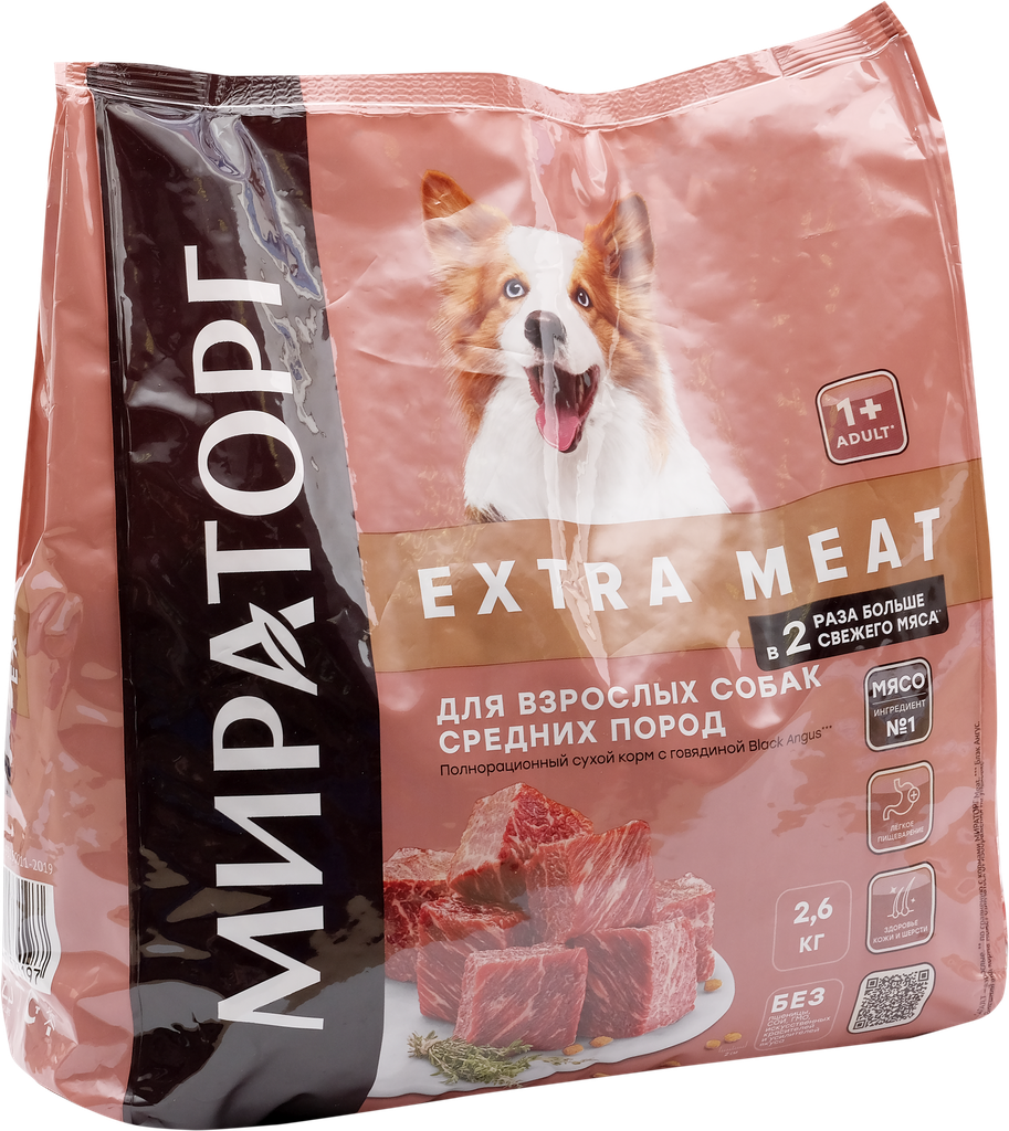 Сухой корм Мираторг Extra Meat для взрослых собак средних пород старше 1 года, с говядиной Black Angus, 2.6 кг