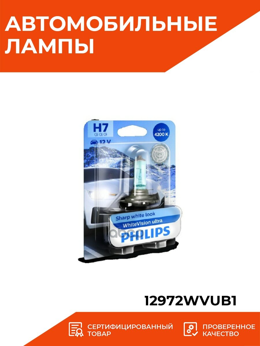 PHILIPS 12972WVUB1 Лампа галогеновая головного света H7 PX26d 4200K White Vision Ultra 12V 55W Блистер 1 шт