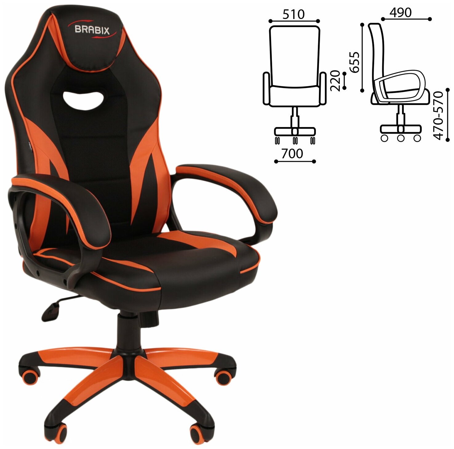 Кресло компьютерное BRABIX Accent GM-161 TW/экокожа, черное/оранжевое