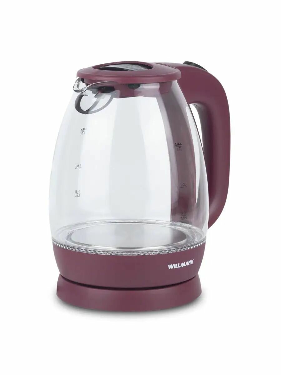 Чайник электрический Willmark WEK-1705GC стеклянный, мощность 2200 Вт, емкость 1.7 л, подсветка, бордовый