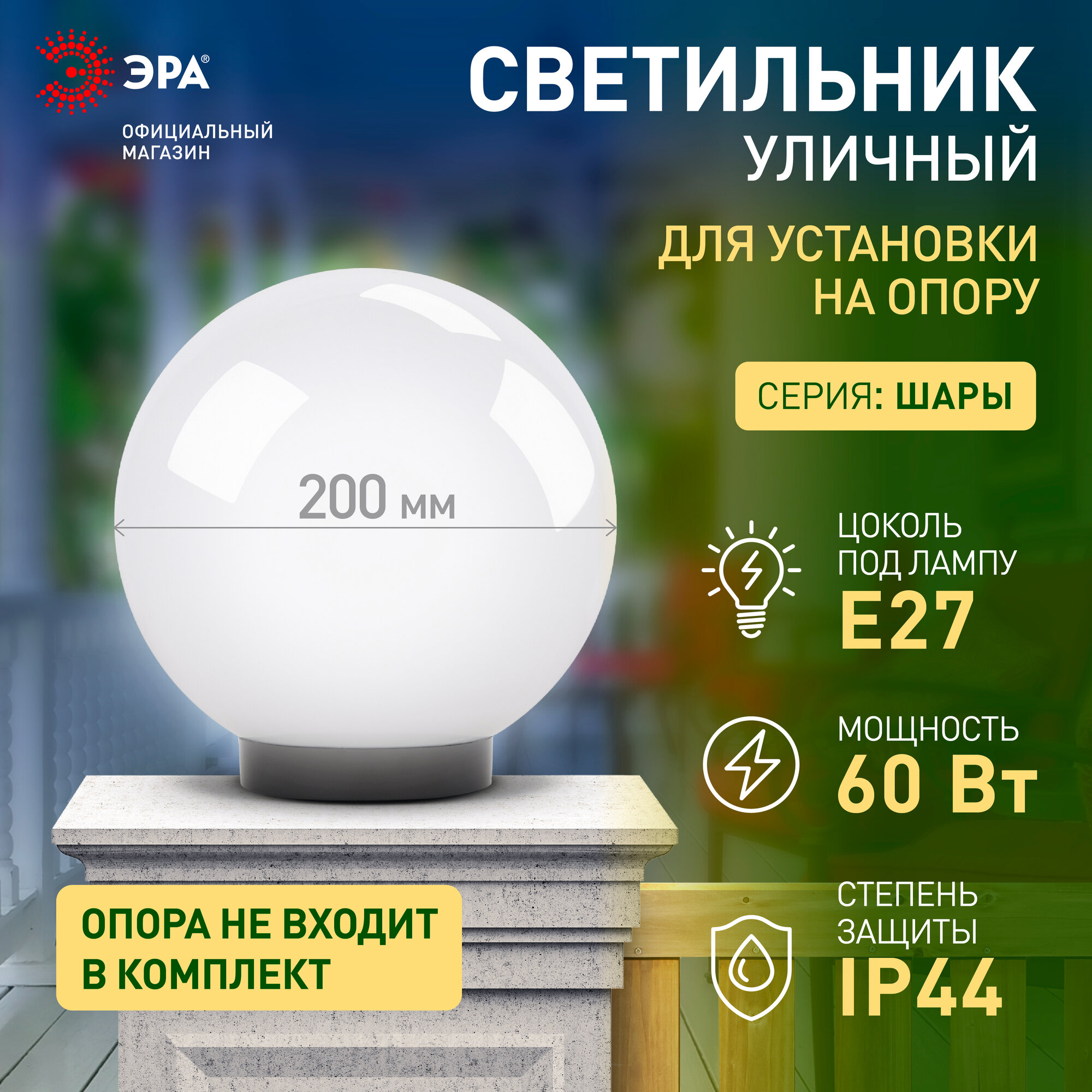 Купить Светильник уличный шар на столб ЭРА НТУ 01-60-201 220в, D200mm, Е27, IP44