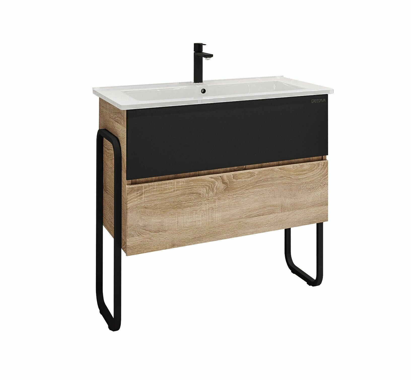 Купить Тумба под раковину Grossman СОЛИС-85 с 2-я ящ. дуб сонома/черная