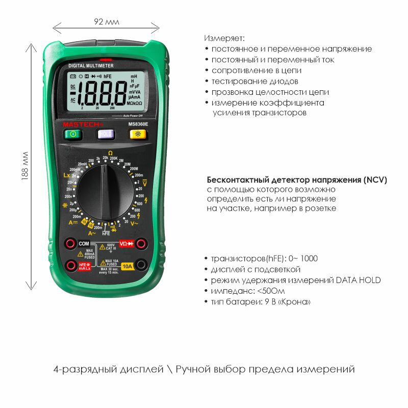 Мультиметр цифровой автоматический MASTECH Мastechс MS8360E, возможность измерения емкости и индуктивности