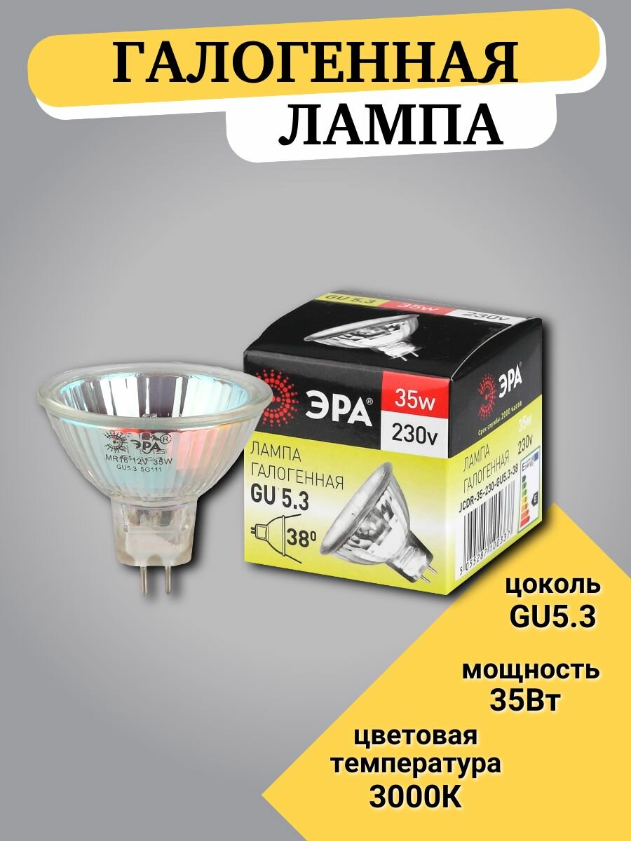 (10 шт.) Галогенная лампочка ЭРА MR16 35Вт 230В GU5.3