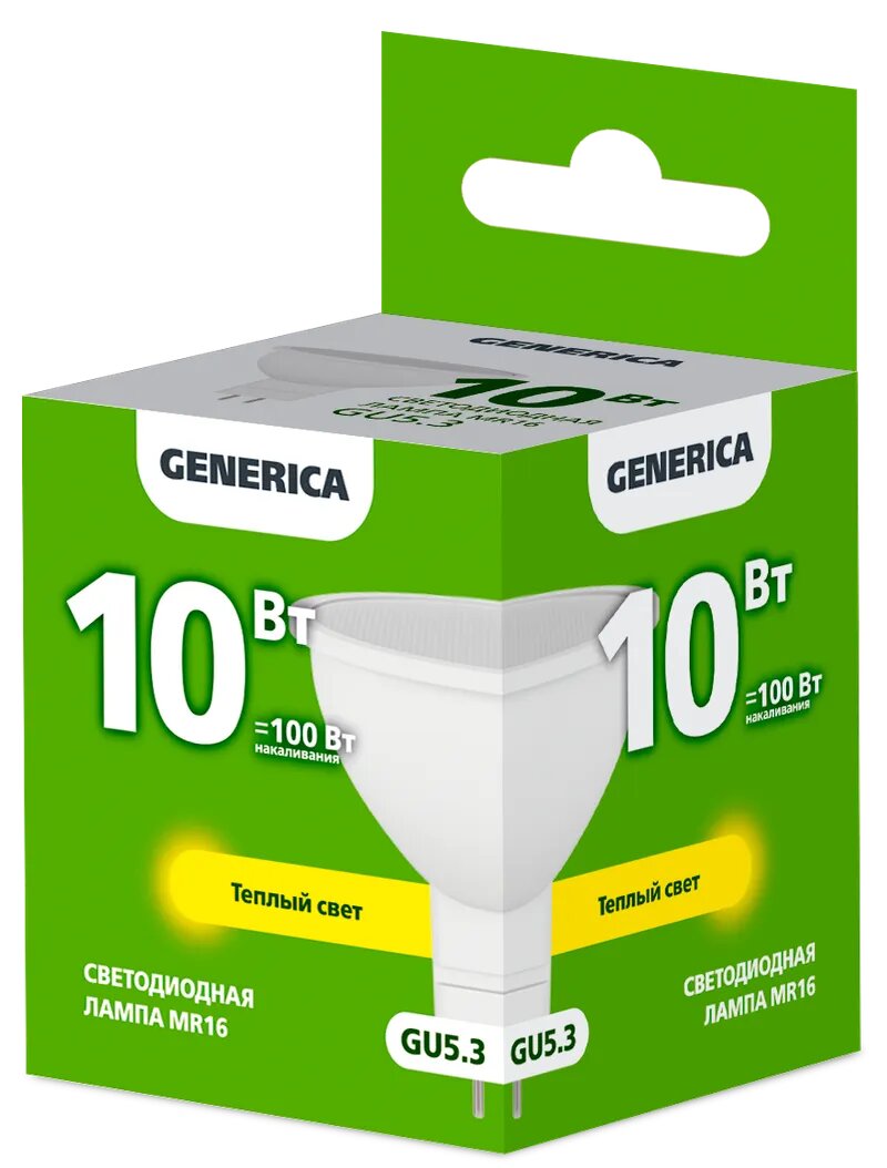 Купить Лампочка светодиодная GENERICA 10Вт=100Вт 3000К теплый свет MR16 GU5.3 софит (комплект из 10 шт.)