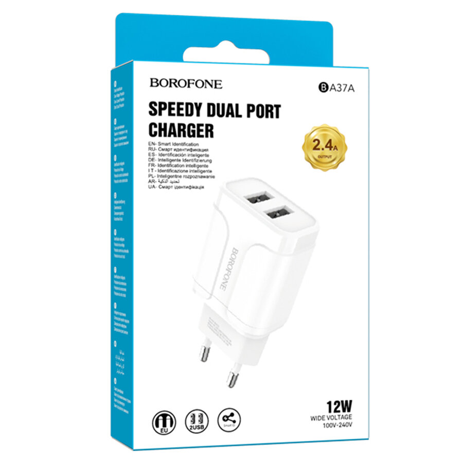 Зарядное устройство Borofone BA37A Speedy 2xUSB 2.4А White 0L-00045123