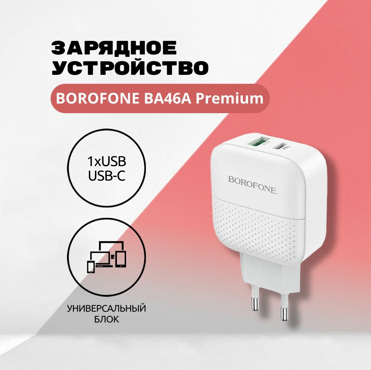 Зарядное устройство сетевое СЗУ BOROFONE BA46A Premium 1xUSB QC3.0 + USB-C PD 18W, 3A (белый)