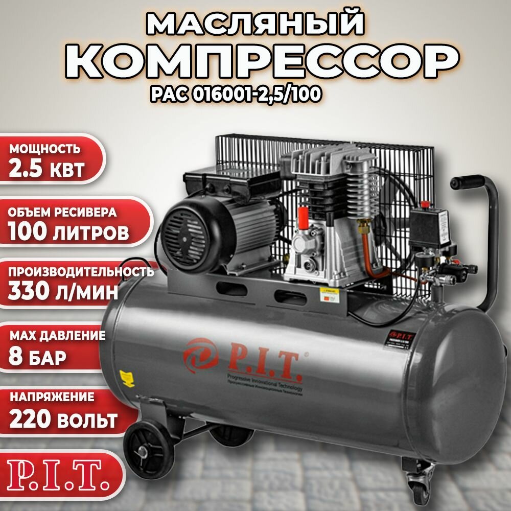 Компрессор масляный P.I.T. PAC 016001-2,5/100, 100 л, 2.5 кВт