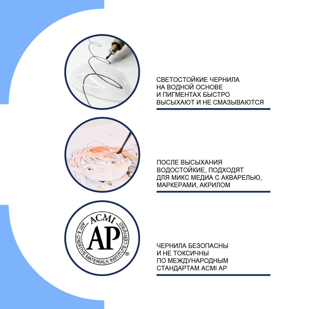 Ручка-линер капиллярная Pigma Micron, 0,45 мм., цвет чернил: синий