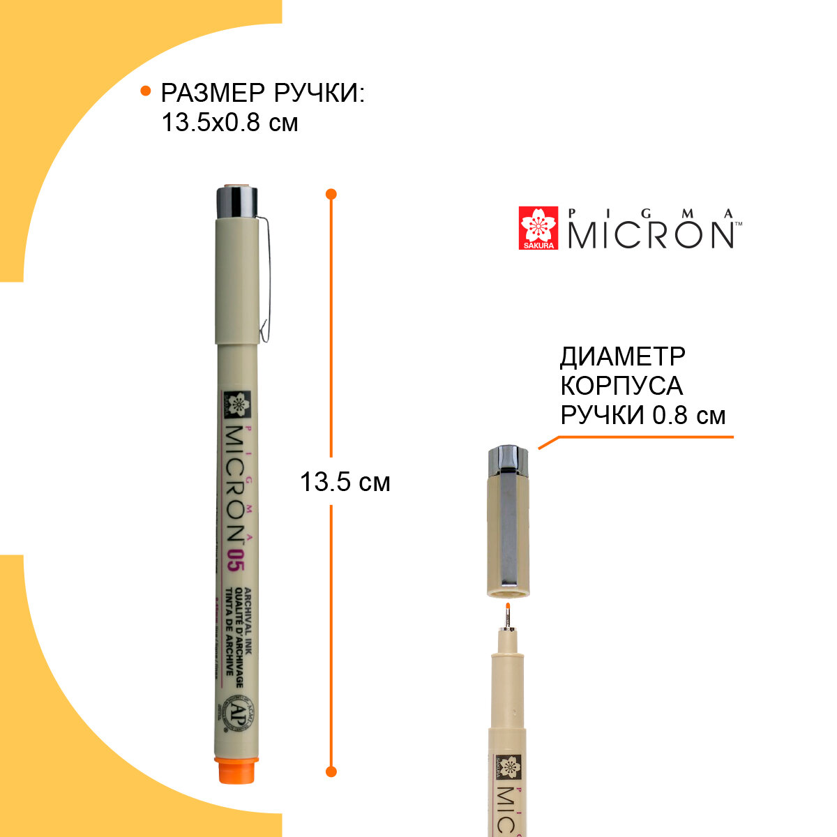 Ручка капиллярная Sakura Pigma Micron 05, толщина линии 0.45 мм, цвет оранжевый