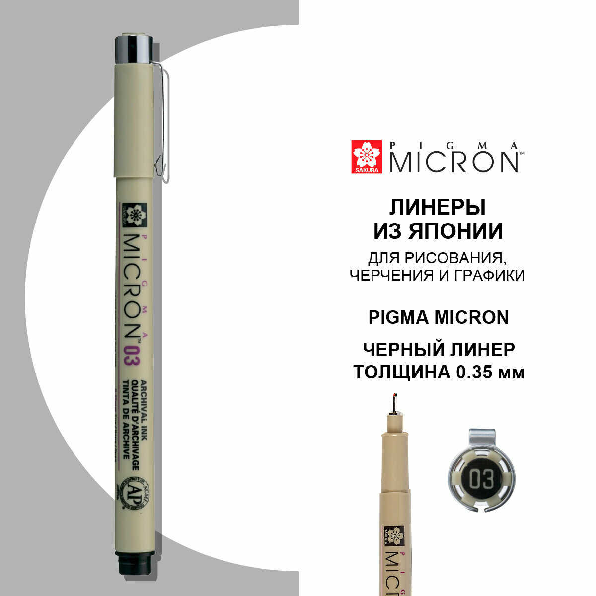 Ручка капиллярная для черчения Sakura Pigma Micron 03 линер 0.35 мм, черный, (высокое содержание пиг