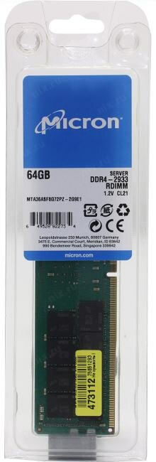 Память оперативная Micron 64GB DDR4 2933 MT/s CL21 2Rx4 ECC Registered DIMM 288pin