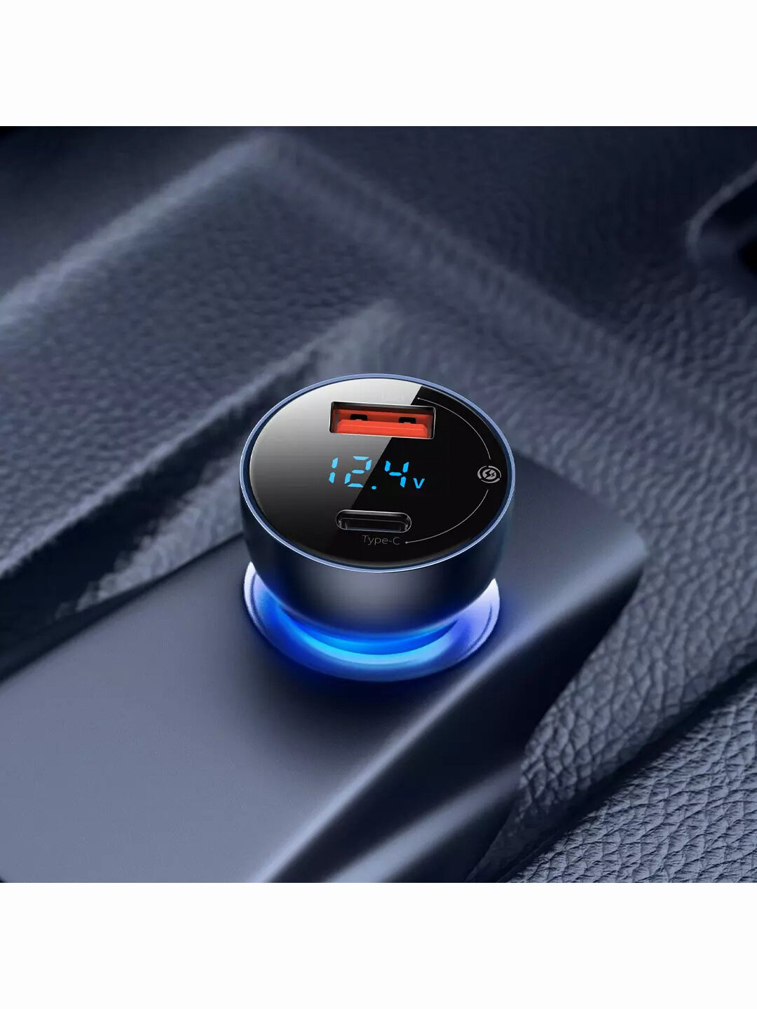 Автомобильное зарядное устройство BASEUS Particular, USB+USB-C, 5A, серебристый, дисплей