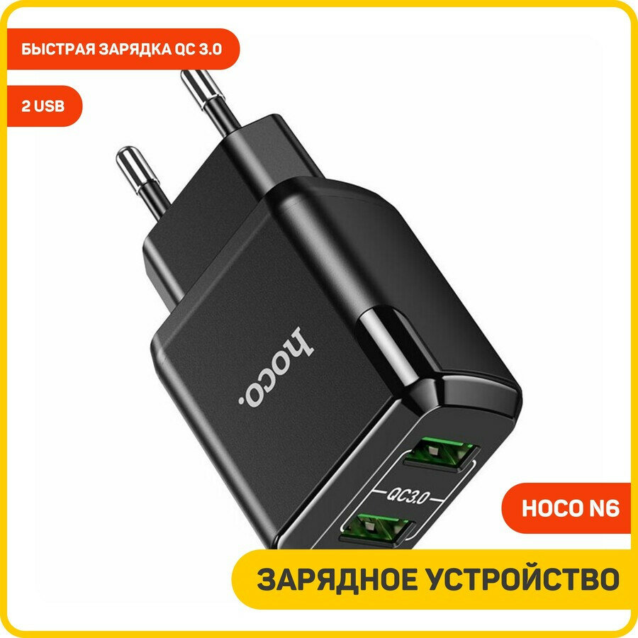 Сетевое зарядное устройство Hoco N6, 18 Вт, 2 USB QC30 - 3 А, черный