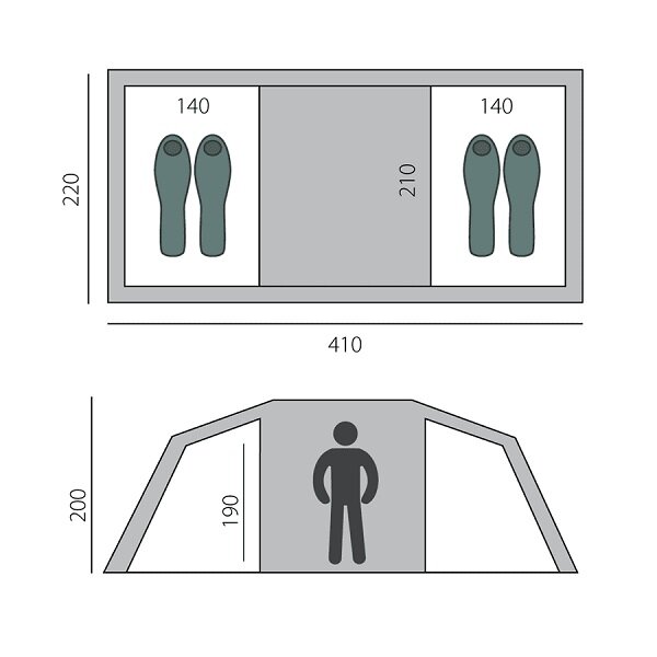 | Габариты внешней палатки(ДxШxВ) | 480x220x200 cм |