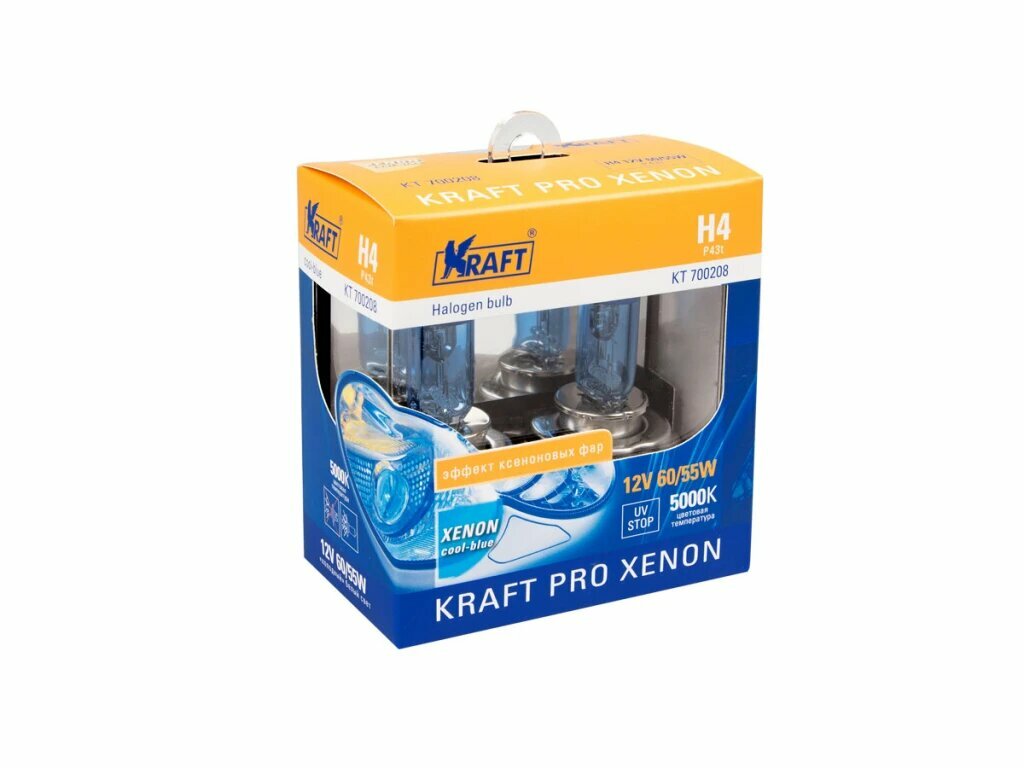 KRAFT KT700208 Лампа 12 В H4 60/55 Вт P43t Pro Xenon 2 шт. блистер Kraft
