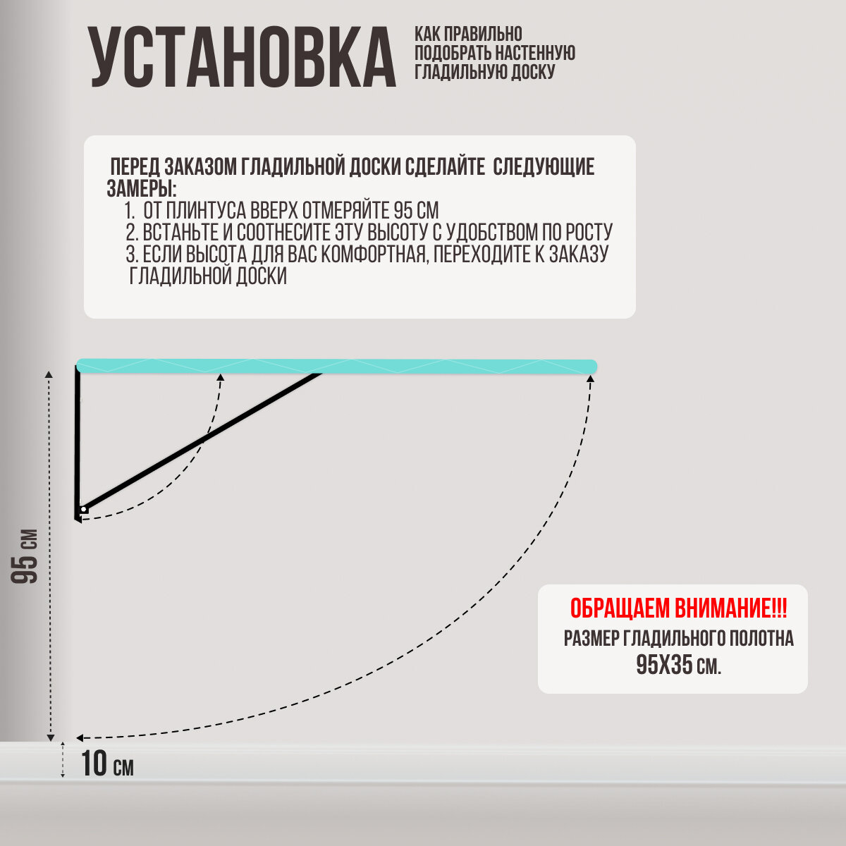 | Размеры гладильной поверхности (ДхШ) | 95 x 35 см |