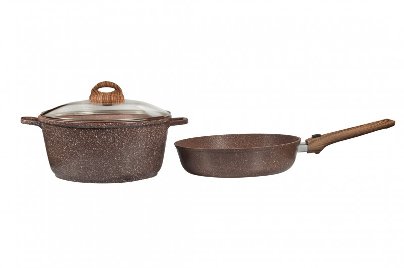 | Комплектация | Сковорода 26 см, Кастрюля 5,5 л., стеклянная крышка, съемная ручка |