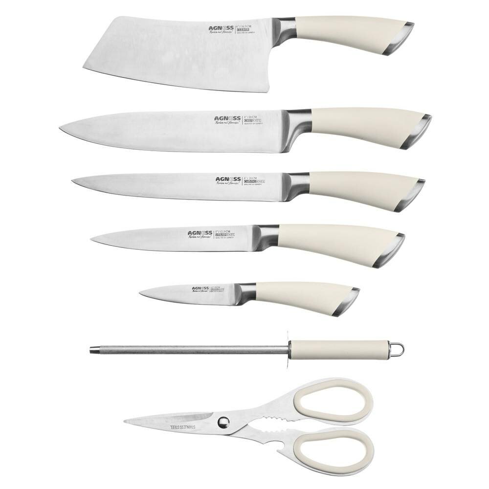 Набор ножей Agness, с ножницами и мусатом на пластиковой подставке, 8 предметов