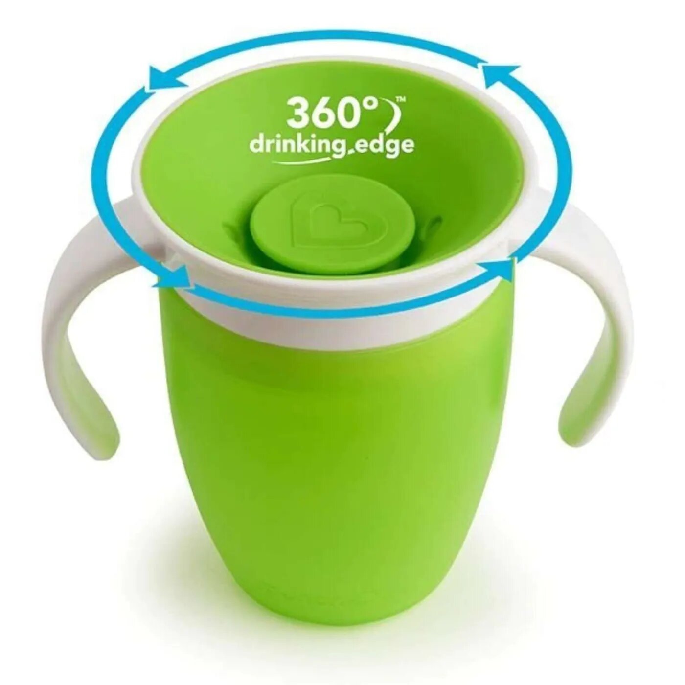 Поильник с крышкой MIRACLE 360° Munchkin непроливайка, с ручками, 207мл. 6мес+, зеленый