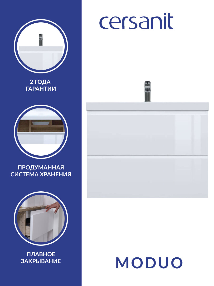 Купить Тумба под раковину подвесная Cersanit MODUO 80 для MODUO 80 белый 64141