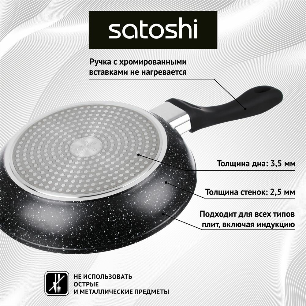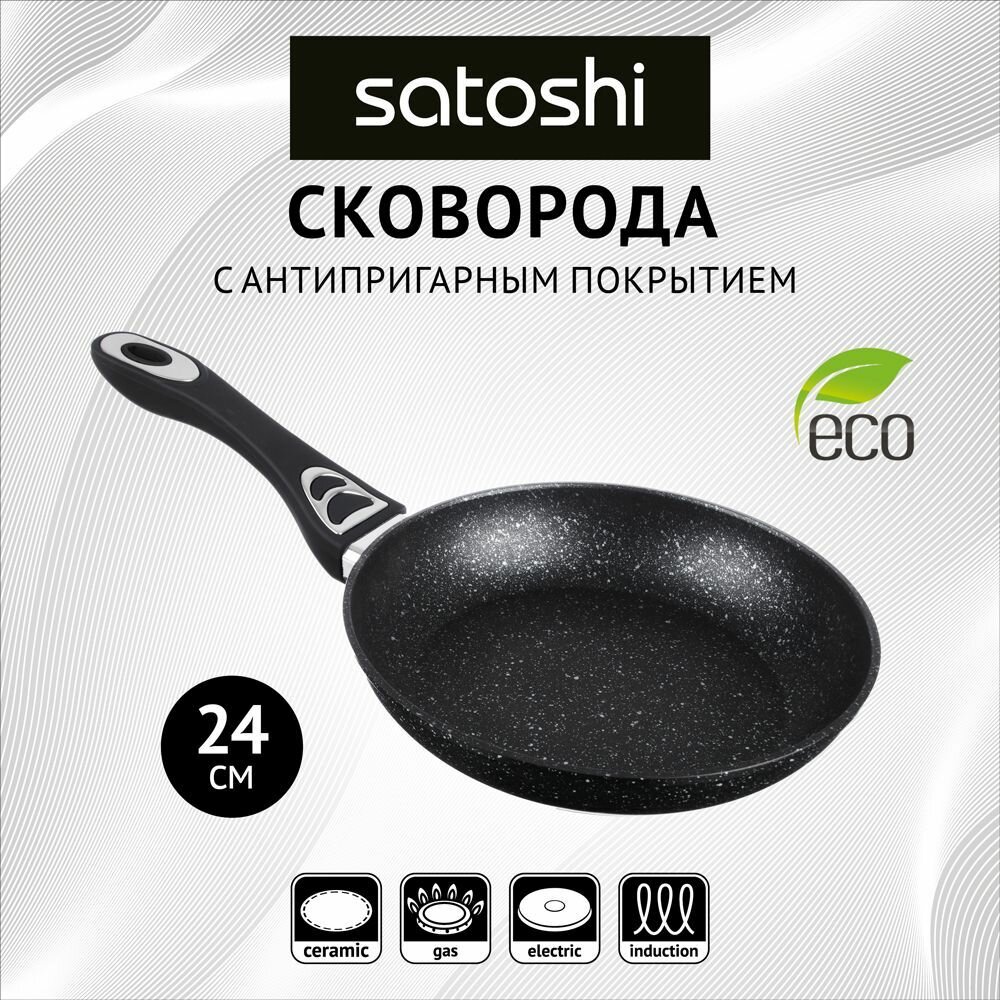 Сковорода Satoshi Kitchenware Танто литая, индукция, антипригарное покрытие, диаметр 24 см