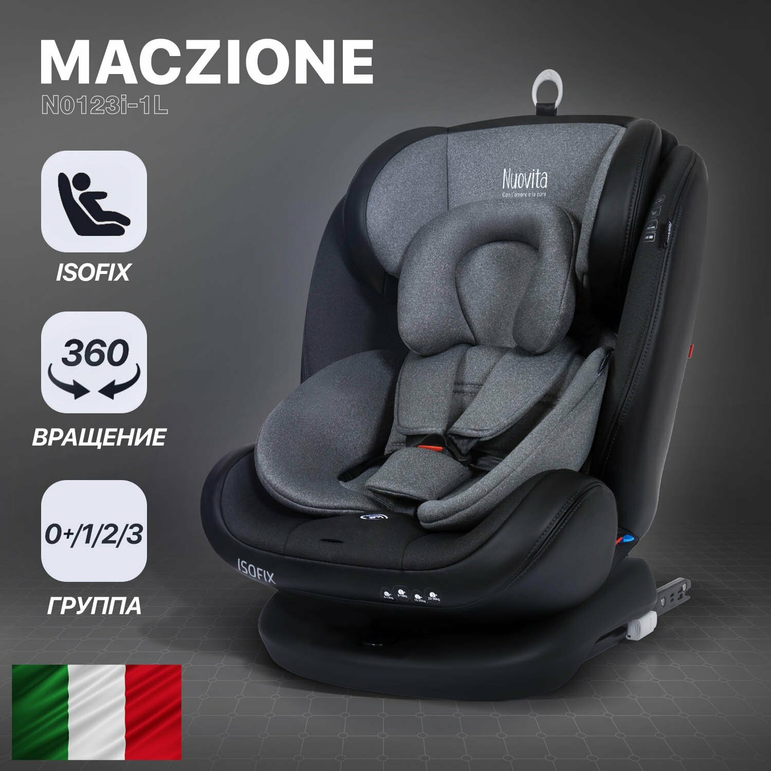 Купить Автокресло детское с креплением Isofix Nuovita Maczione N0123i-1L/Группа: 0+/1/2/3 – от 0 до 12 лет, вес 0-36 кг (Grigio/Серый)
