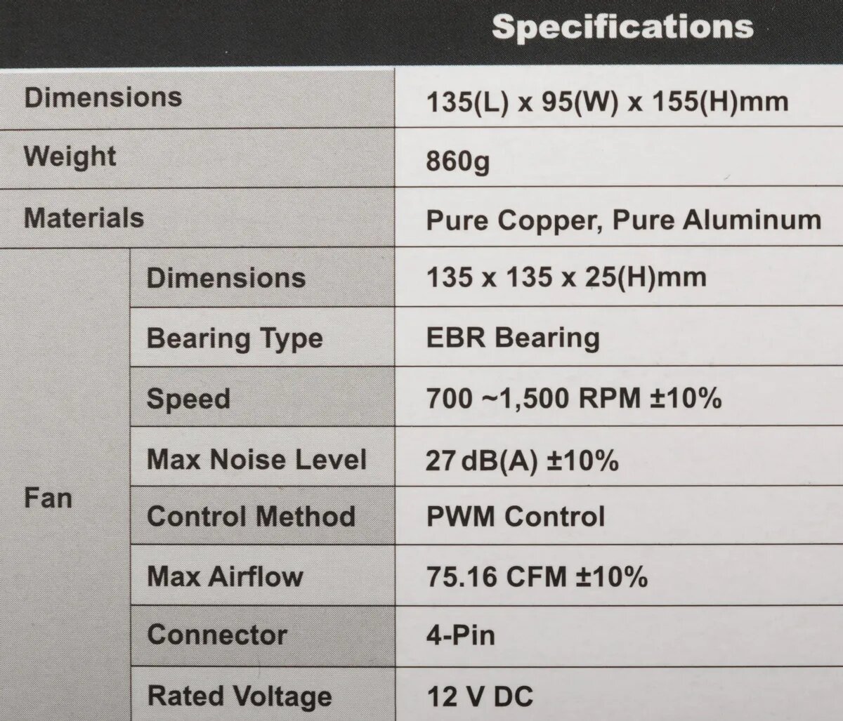 | Размеры кулера (ШхВxГ) | 120x152x132 мм |