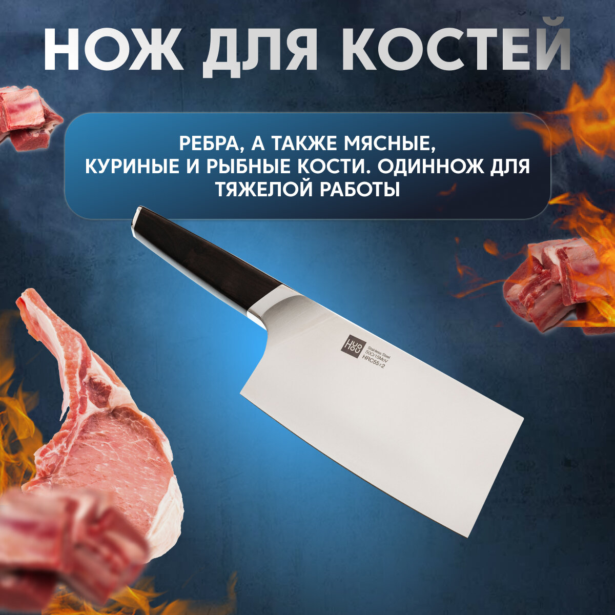 | Типы ножей в наборе | универсальный нож, нож-топорик, разделочный нож, шеф-нож |