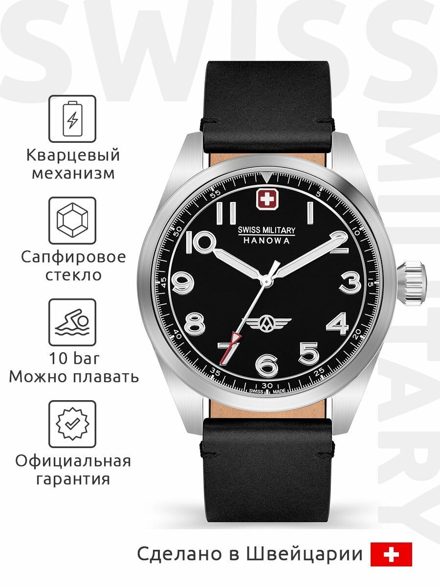 Часы швейцарские наручные мужские кварцевые на ремне Swiss Military Hanowa SMWGA2100401