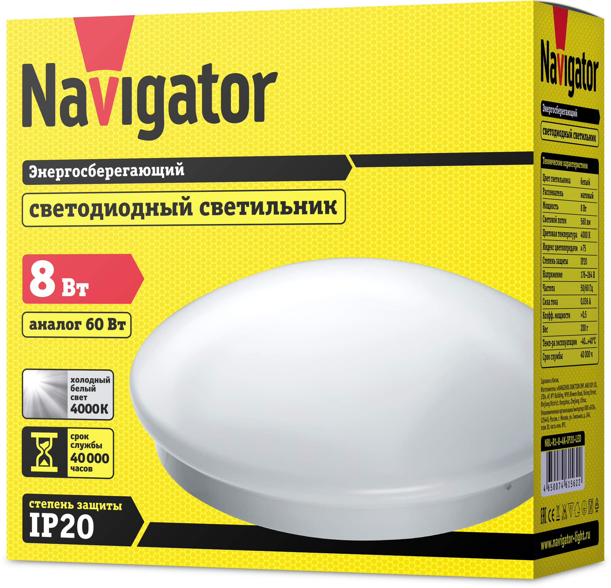 Светильник Navigator, NBL-R1-8-4K-IP20-LED 61562