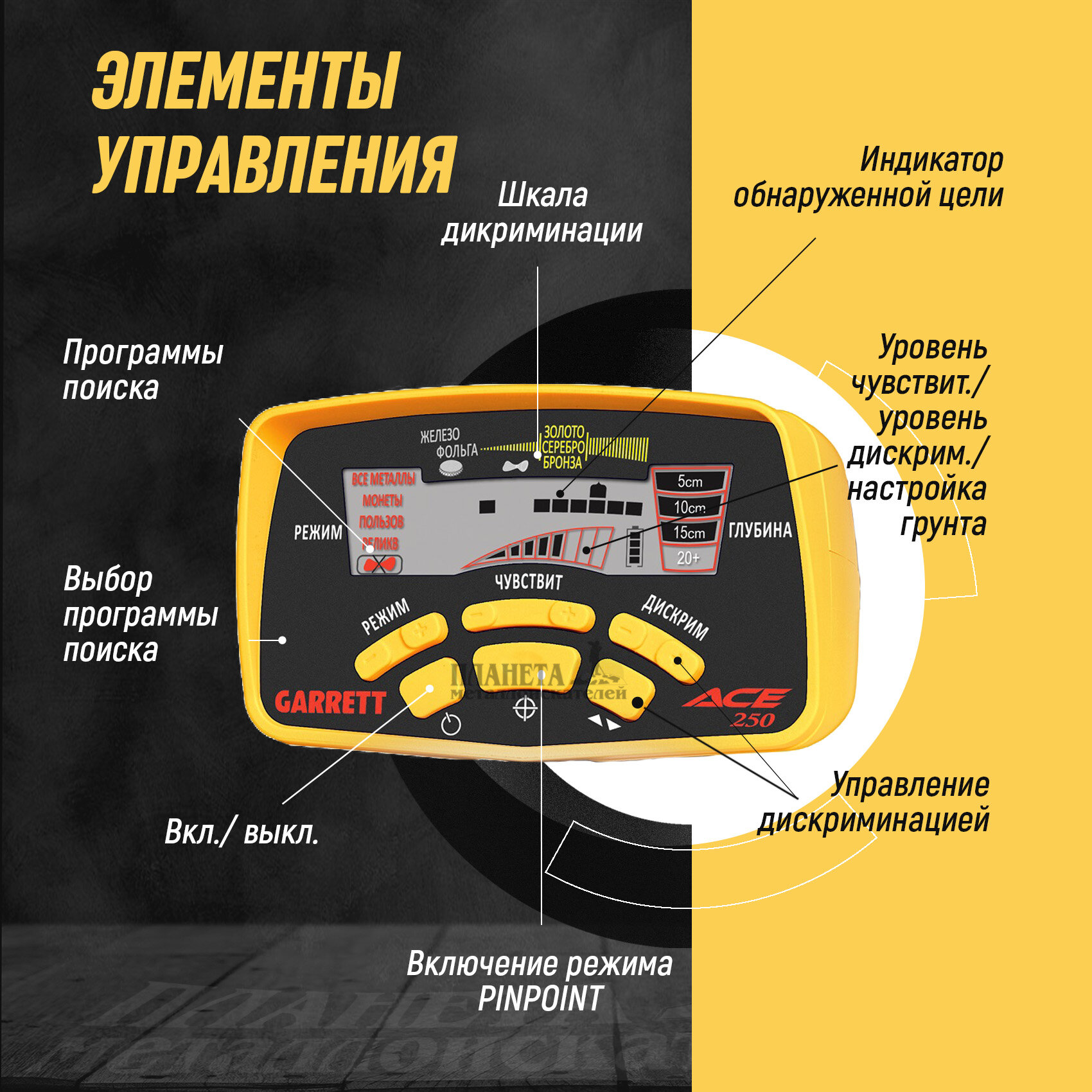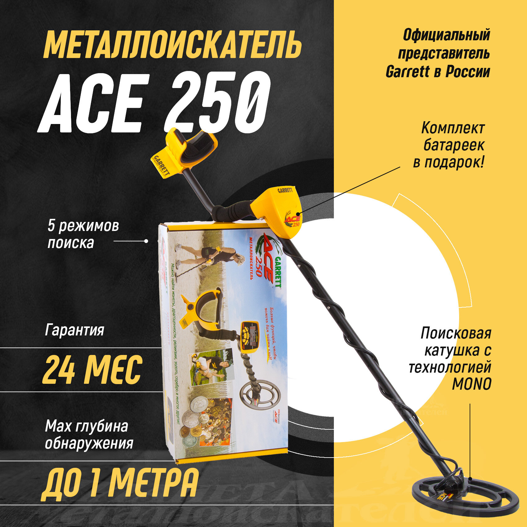 Металлоискатель для новичка Garrett Ace 250 RUS (моно катушка 6,5 х 9 дюймов)