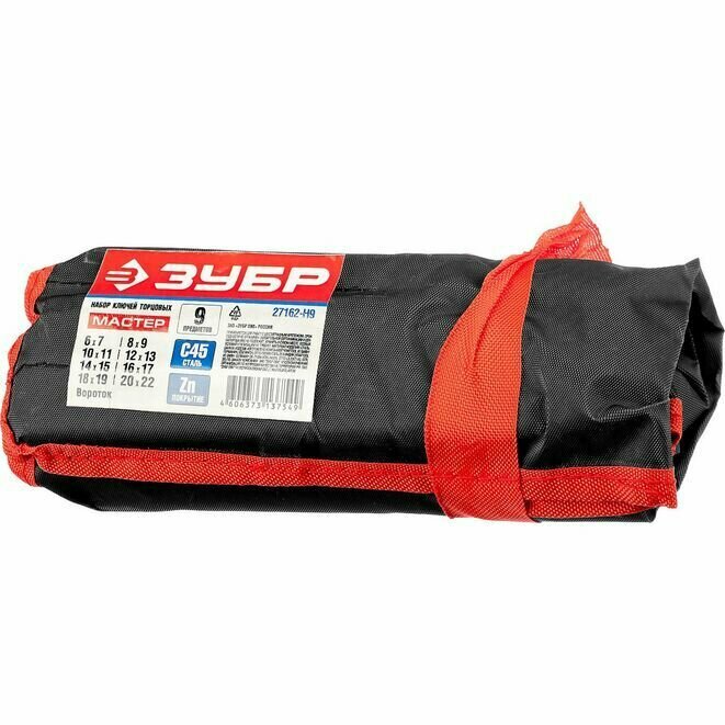 ЗУБР 9 предметов, 6-22 мм, Набор торцовых трубчатых ключей (27162-H9)