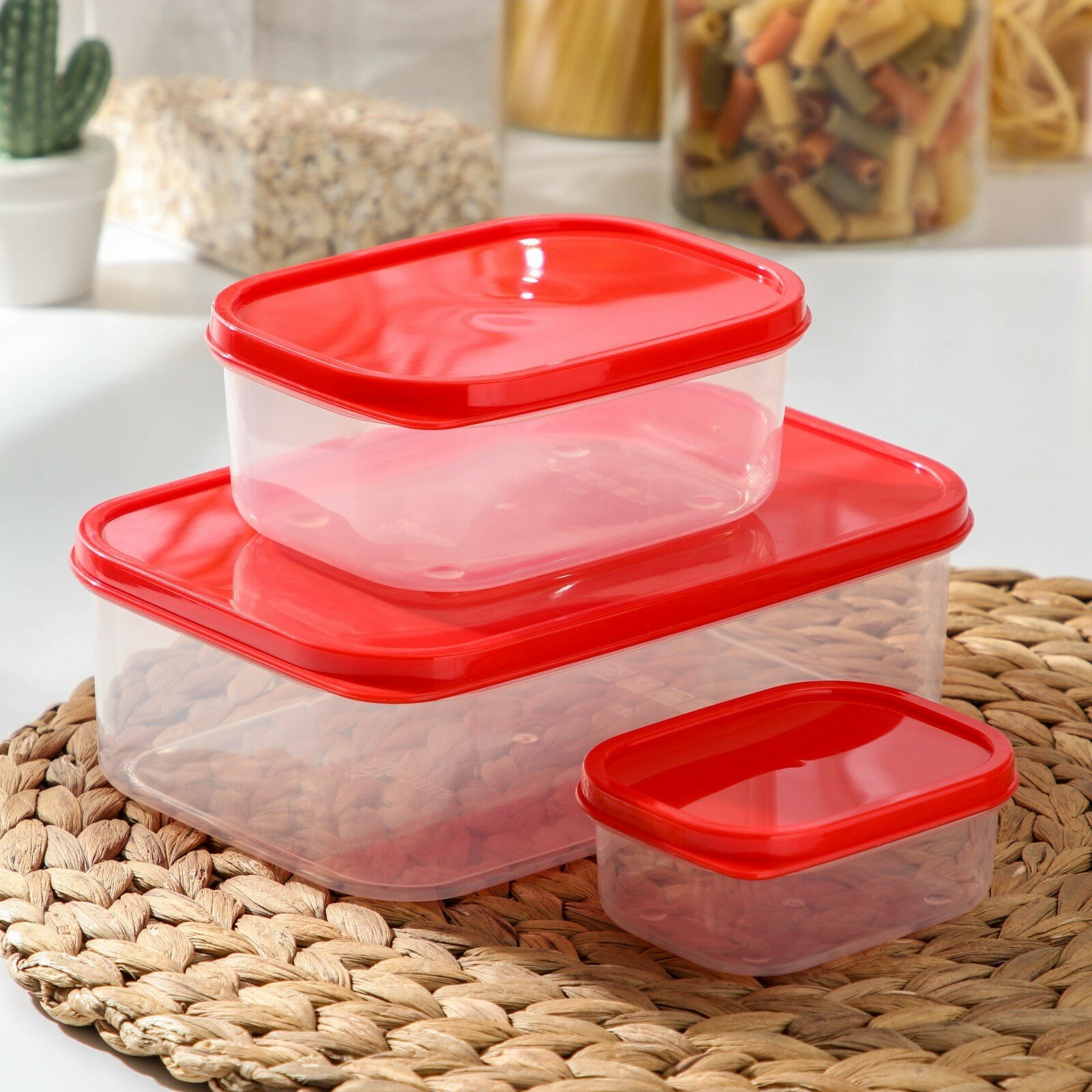 Купить Набор контейнеров пищевых Доляна прямоугольные, 3 шт: 150 и 500 мл, 1,2 л, красный
