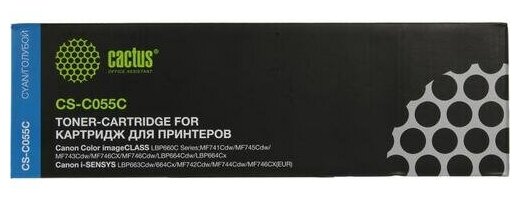 Картридж лазерный CACTUS (CS-C055C) для Canon LBP663Cdw/664Cx/MF746Cx/742Cd, голубой, ресурс 2100 страниц