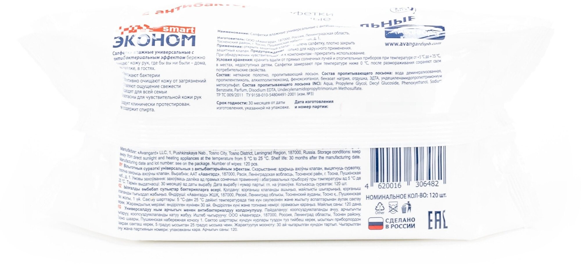 Влажные салфетки авангард эконом Smart, 120 шт, для всей семьи, с пластиковым клапаном