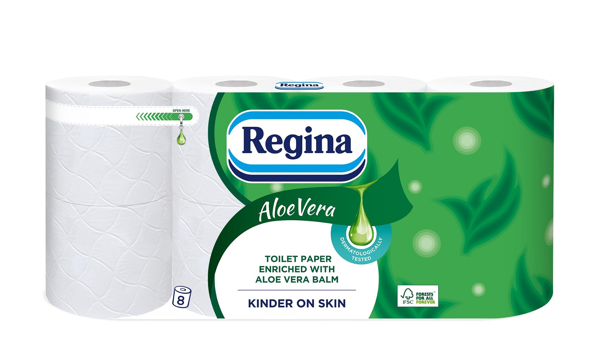 Купить Regina Бумага туалетная белая Алое Вера 3 слоя 8 рулонов