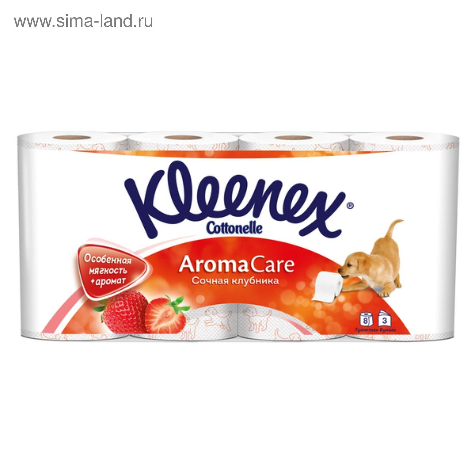 Туалетная бумага Kleenex Aromа Care Сочная клубника белая трёхслойная 8 рул., клубника