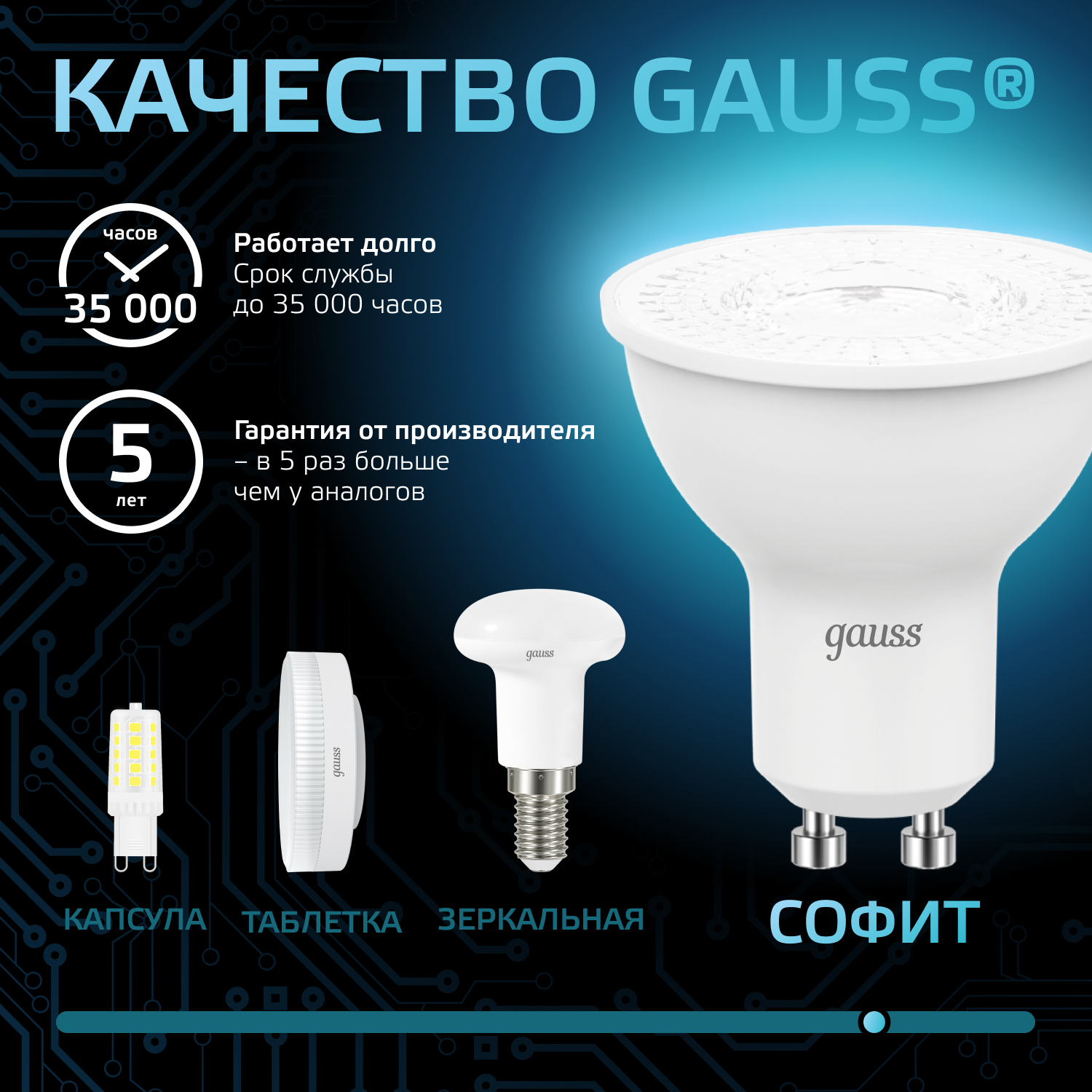 Лампочка светодиодная MR16 GU10 7W холодный белый свет 6500K упаковка 10 шт. Gauss