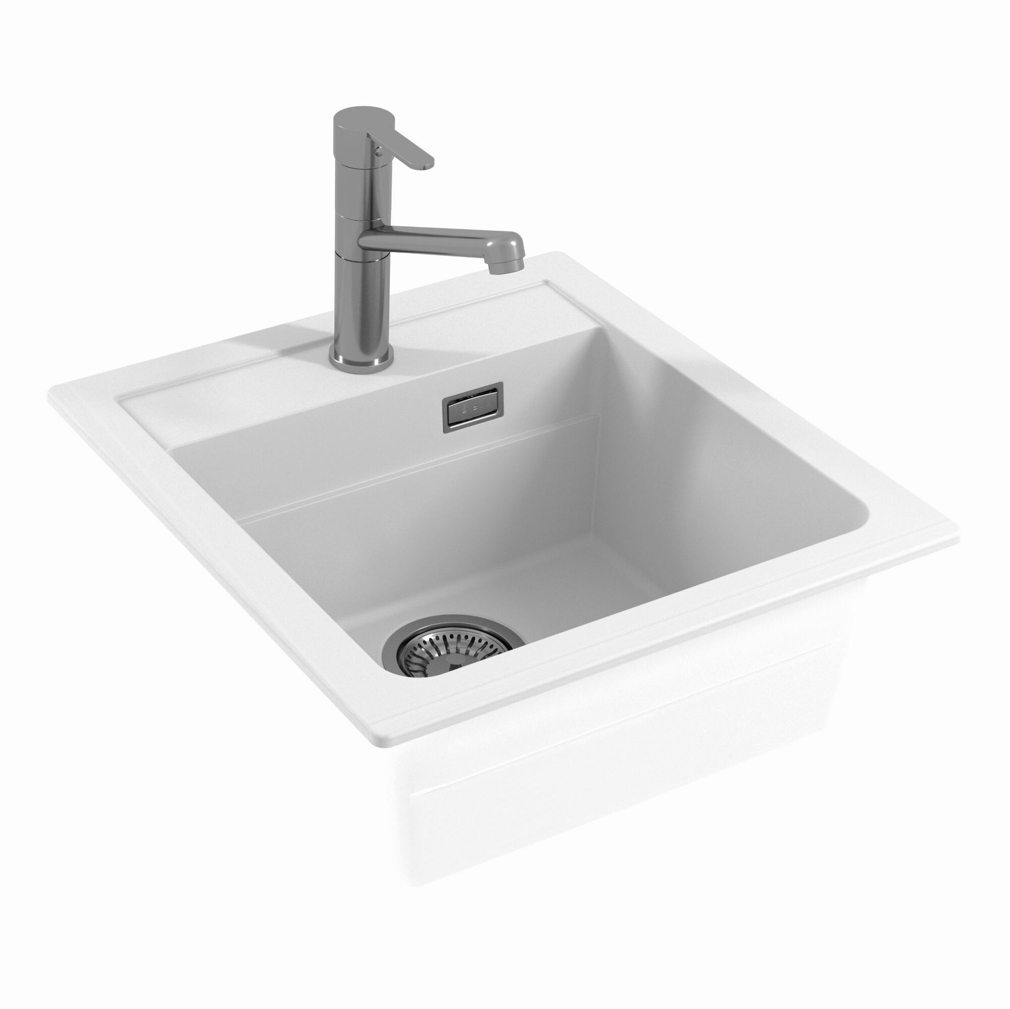 Купить Раковина для кухни врезная каменная Alveus Granital Atrox 20 ARCTIC - G11 470 X 500 / кухонная мойка накладная из искусственного камня, гранит, белый