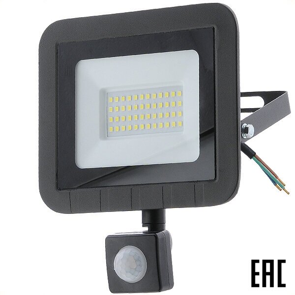 Прожектор светодиод СДО 50Вт 6500К 4000Лм черный с внешним датчиком движения IP65 LPR-041-2-65K-050 ЭРА