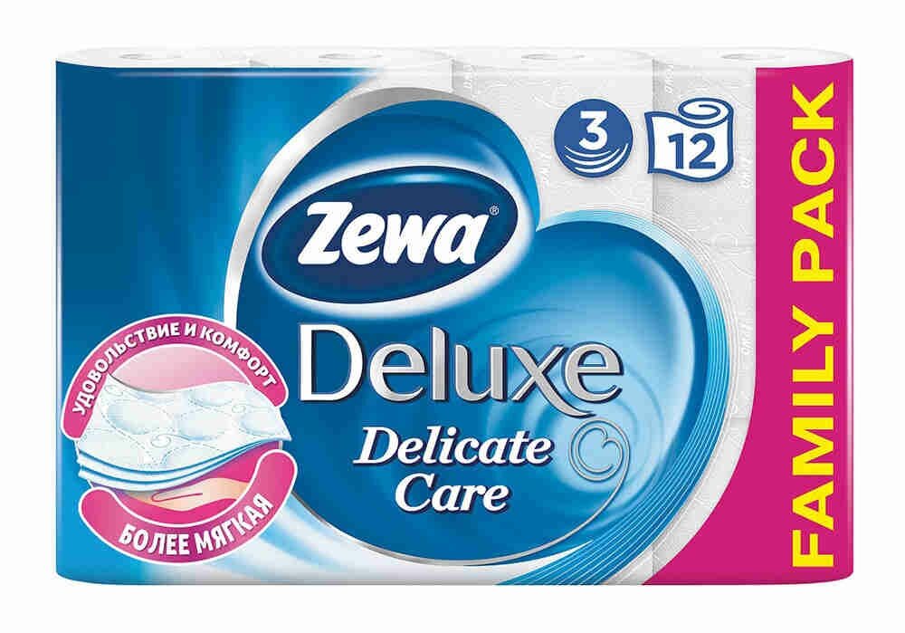 Купить Туалетная бумага Zewa Deluxe Белая, 3 слоя, 12 рулонов