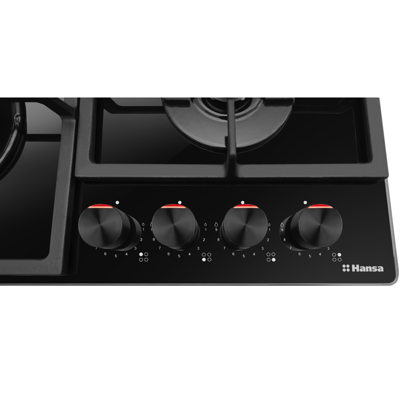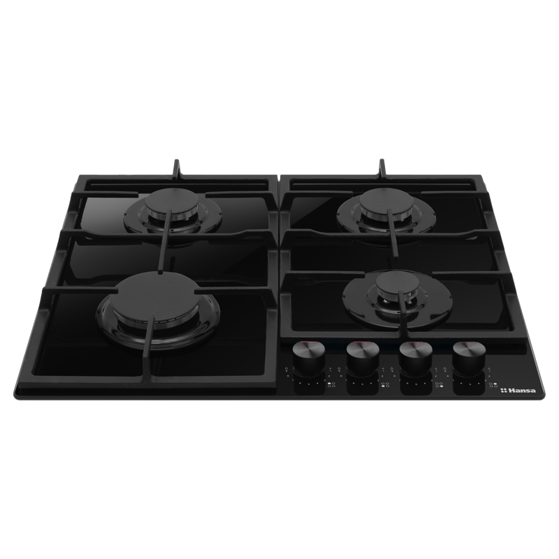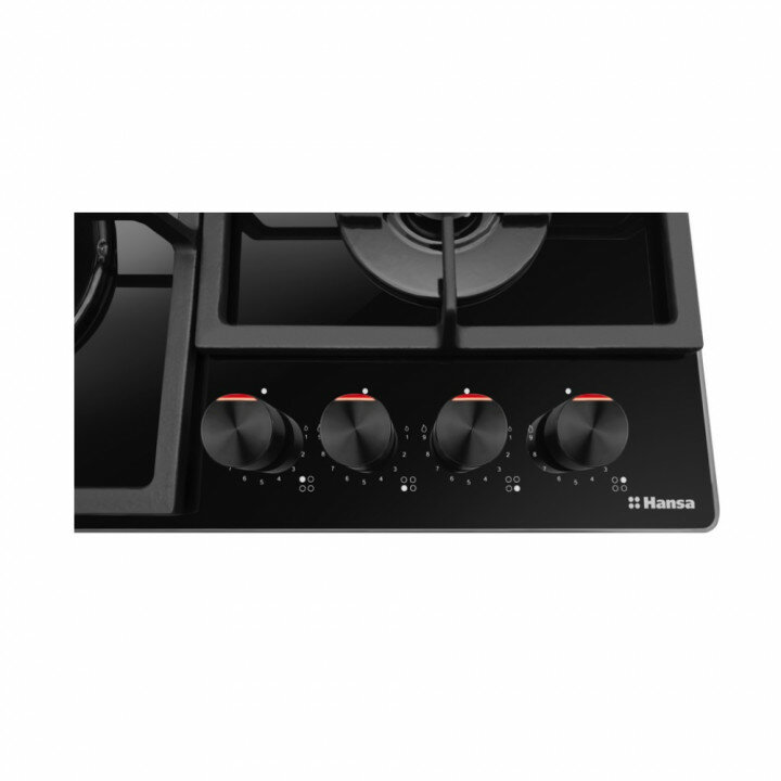 Газовая варочная панель Hansa BHKS630540, встраиваемая, 60 см, газ-контроль и автоподжиг, чугунные решетки, черная