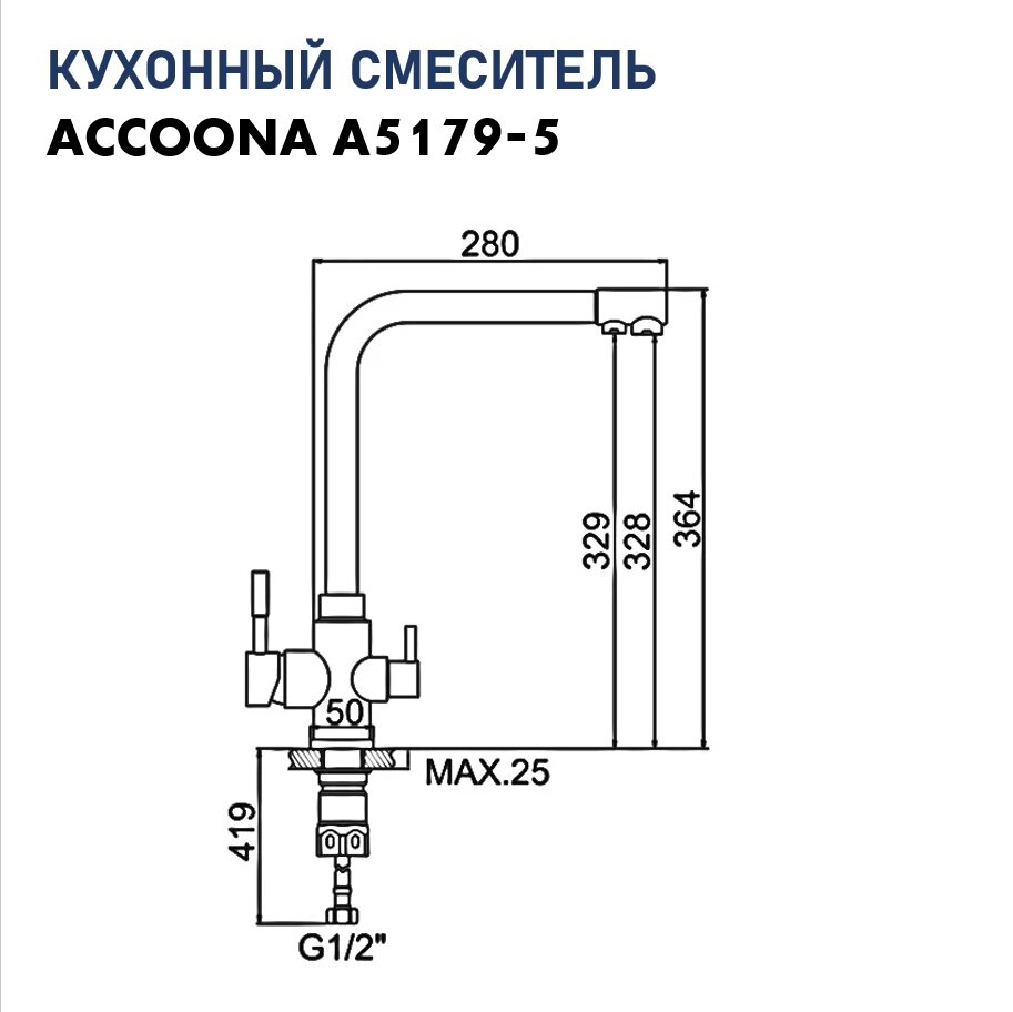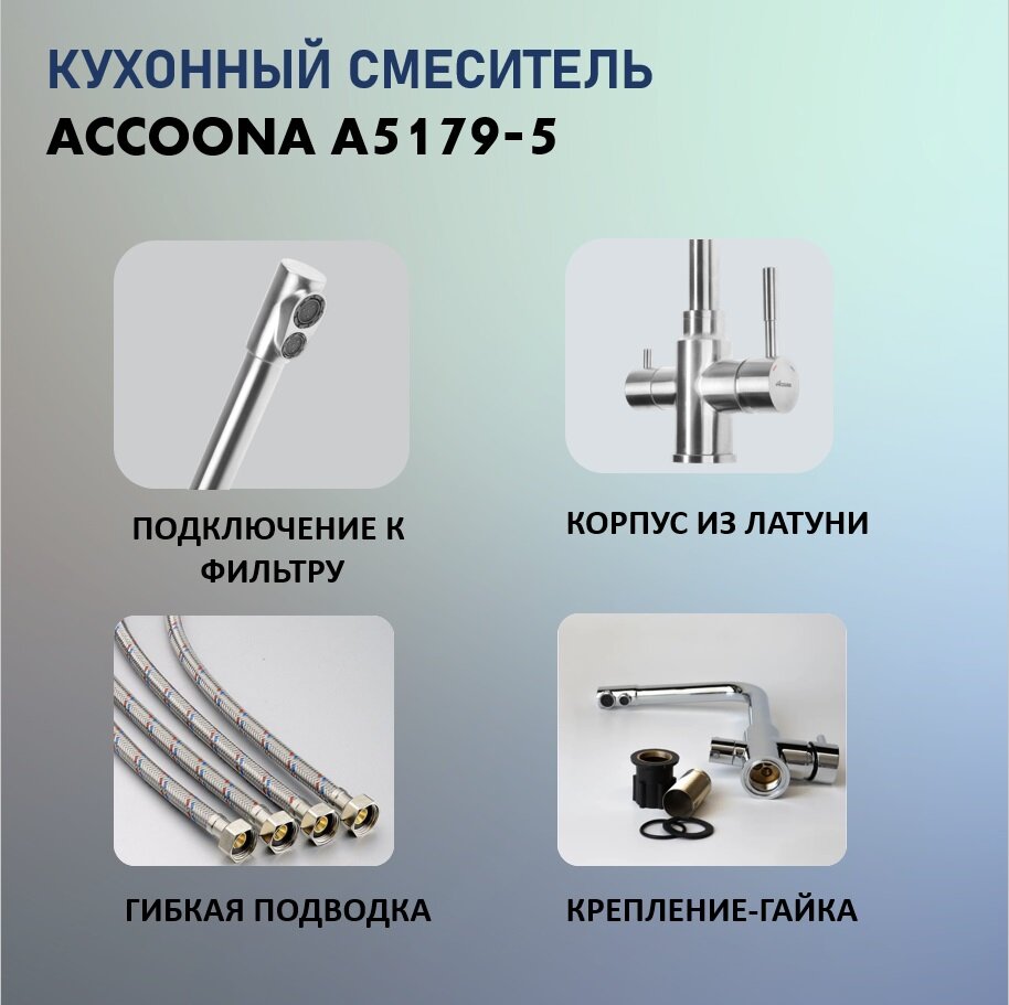 Смеситель для кухни Accoona A5179-5, с выходом для питьевой воды, нержавеющая сталь, хром Accoona 26 .