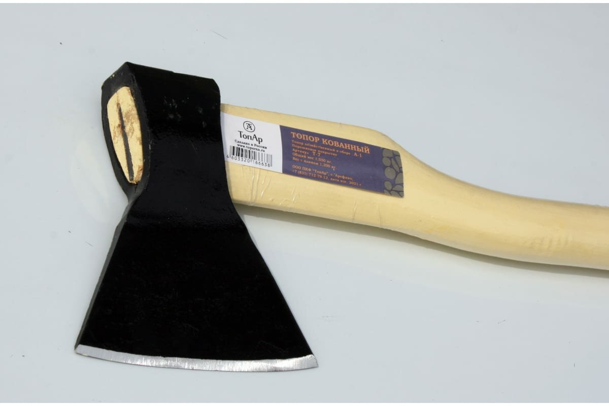 Топор хозяйственный кованый с деревянной рукояткой/ ТопАр 1,2 кг/Топорище из березы с биозащитным составом/с порошковым покрытием/в сборе A1