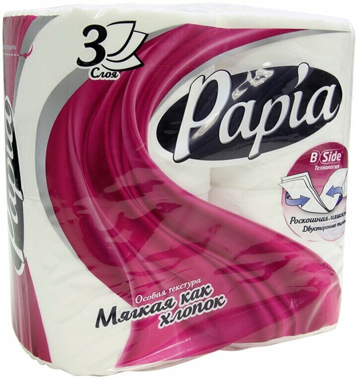 Бумага туалетная бытовая, спайка 4 шт., 3-слойная (4 х 16,8 м), PAPIA, белая, 5058528 (цена за 1 ед.товара)