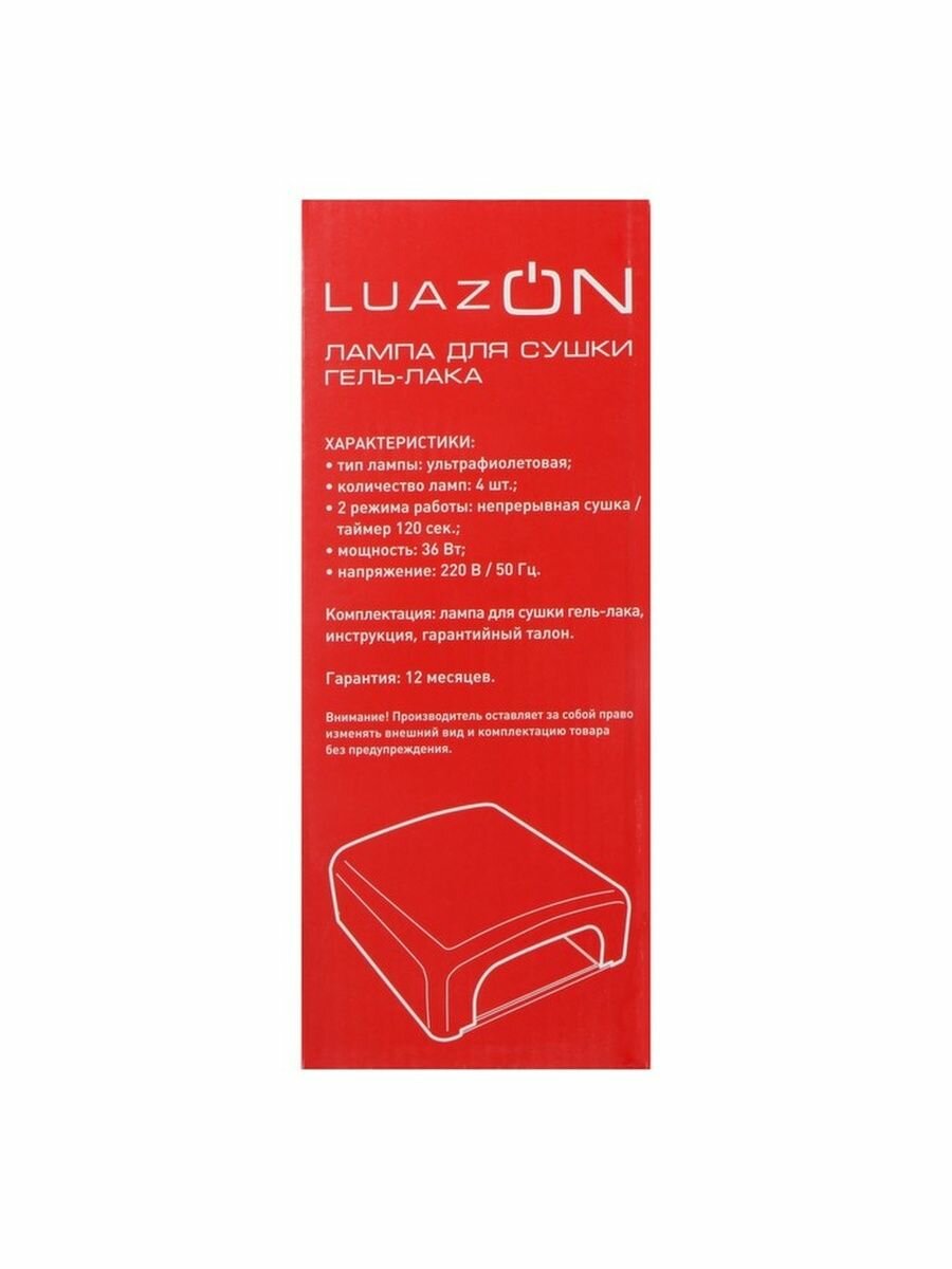 Лампы для сушки гель-лака Luazon Home Лампа для гель-лака Luazon LUF-15, UV, 36 Вт, 4 диода, таймер 120 с, 220 В, белая