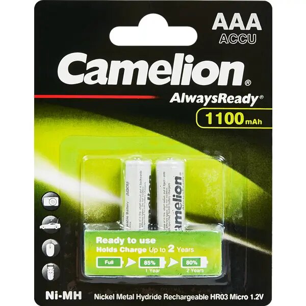 Camelion Always Ready AAA-1100mAh Ni-Mh BL-2 (NH-AAA1100BP2, аккумулятор,1.2В) 15037