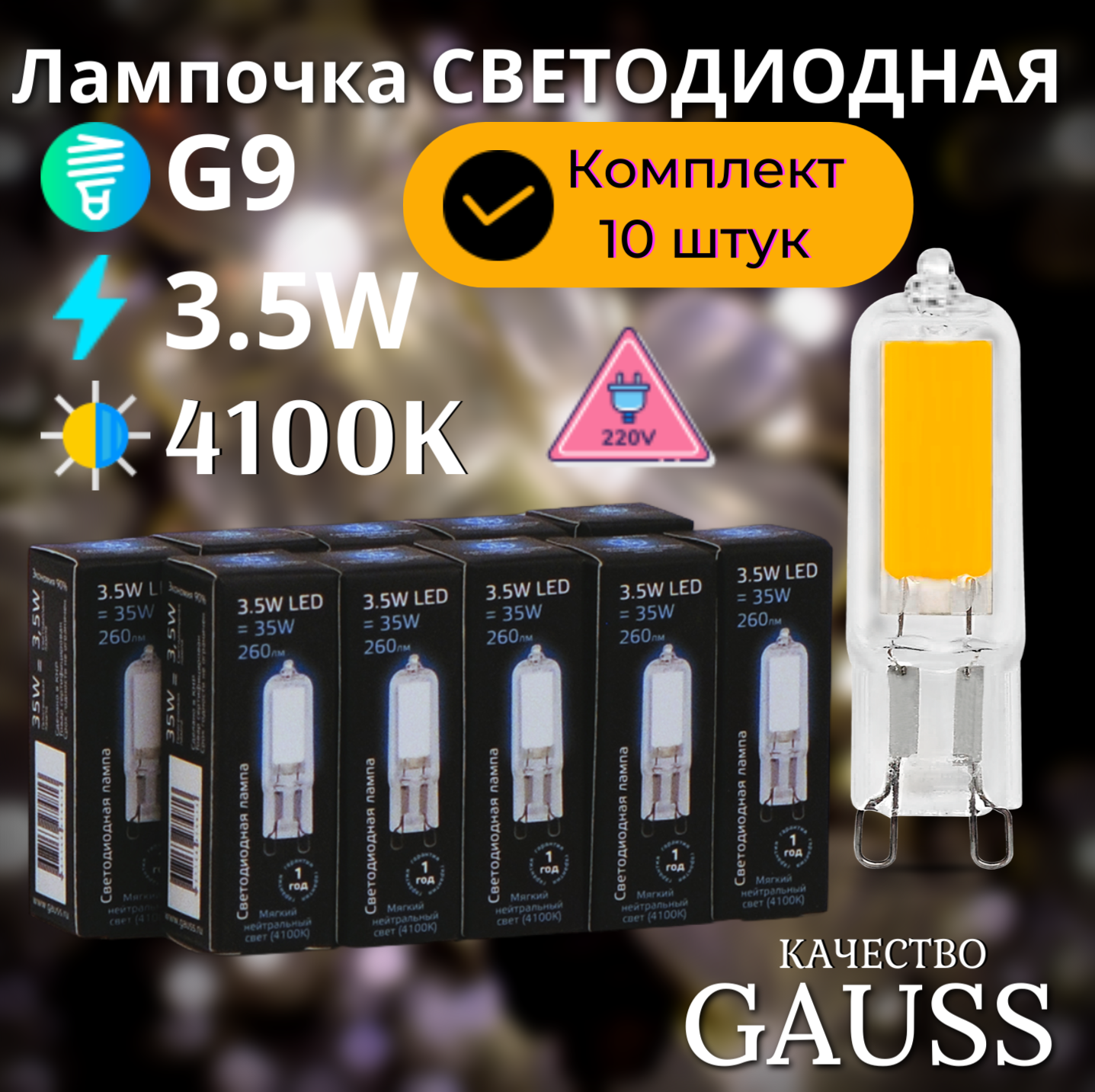 Купить Лампа светодиодная Gauss G9 3.5Вт цок.:G9 капсул. 220B 4100K св.свеч.бел.нейт. (упак.:10шт) (107809203)