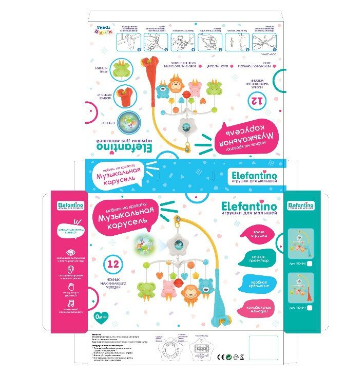 Elefantino Музыкальная карусель на кроватку 12 мелодий